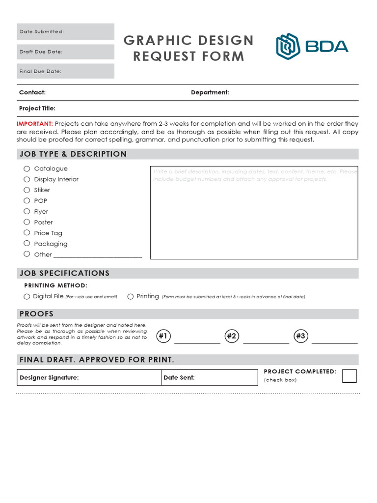 Graphic Design Request Form Template PDF