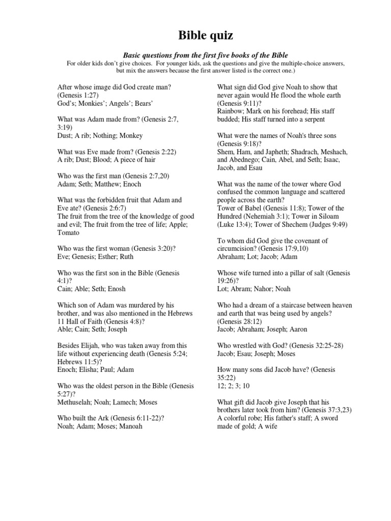 Bible Quiz Multiple Choice Questions With Answers Printable