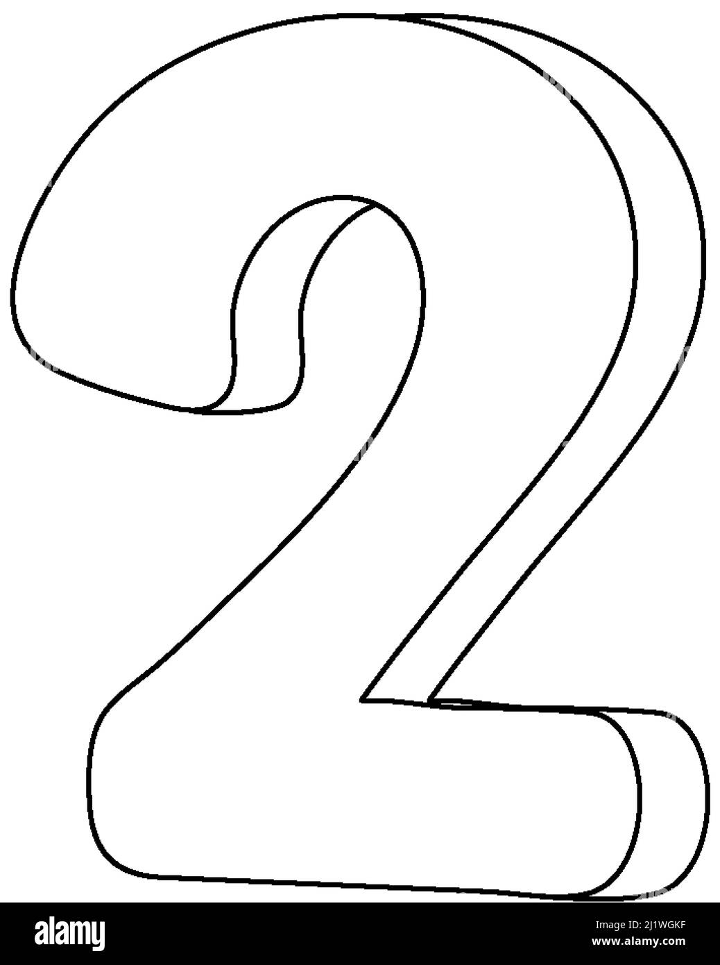 Print free large outline of the number 2. Number 2 outline to use for kids coloring page.