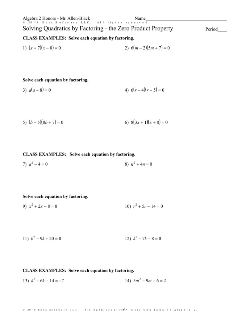 Zero Product Property and Factoring Practice Math Teachers Library